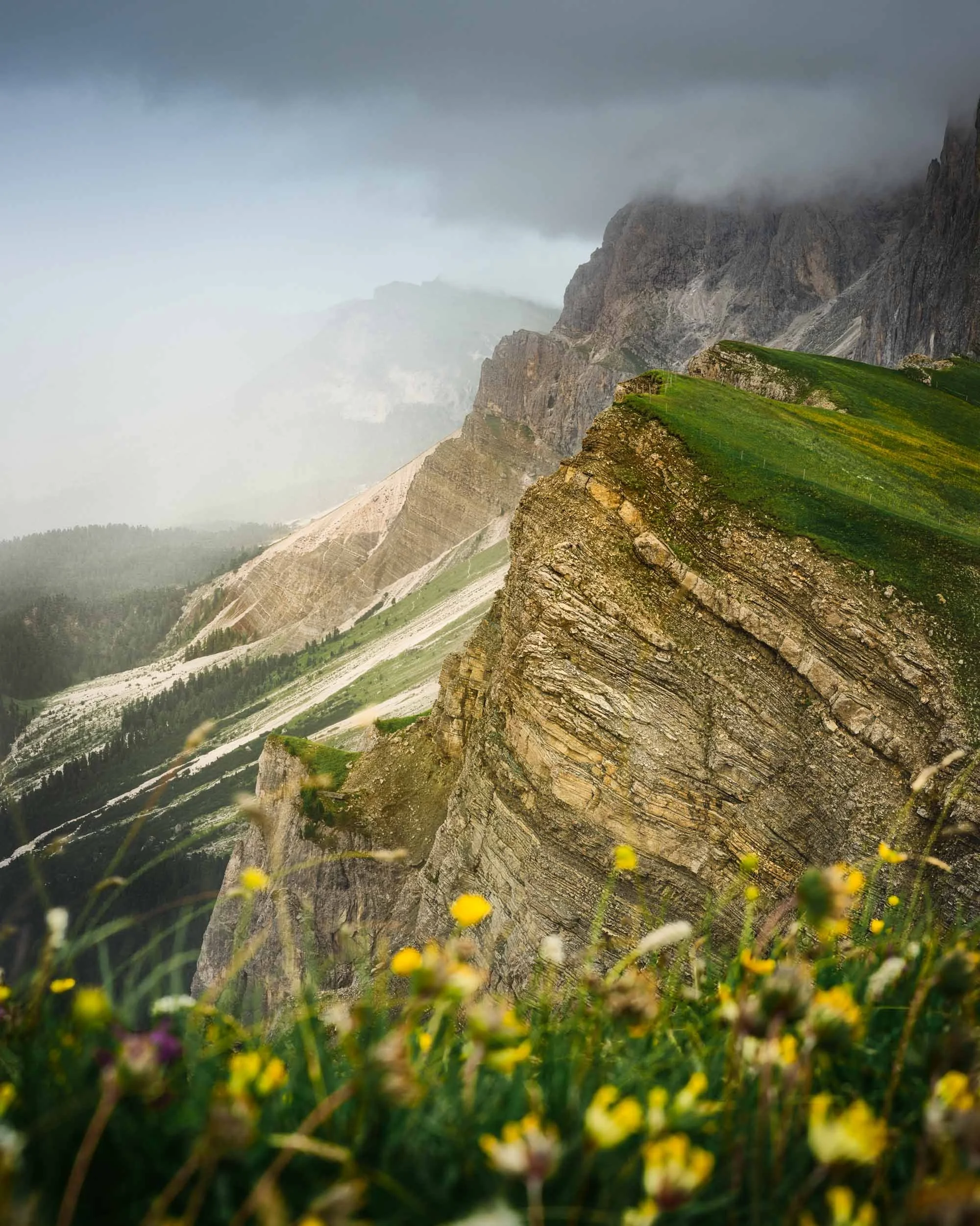 The next day I started for the highlight of my tour, the circumnavigation of the Drei Zinnen or Tre chime di Lavaredo. It is good to reserve a parking space in advance to ensure that you are admitted to the parking lot at Refugio Auronzo. Alternatively, you can also start hiking from Lago Misurina, but you have to cover a few kilometers and altitude meters more. I decided to walk around the Three Peaks in a clockwise direction. The weather was changeable and there were interesting light situations to photograph, with dramatic cloud formations and scattered rays of sunlight shining through the cloud cover. On my way I discovered beautiful wildflowers, a wonderful mountain stream and breathtaking views of the surrounding mountains. Up to the Malga Langalm the hike was pretty easy, but from there it went through a gravel field for a long time, which became a bit exhausting after a while because I had to be constantly careful not to twist my foot and hurt myself, it is also a bit more difficult to find good compositions to photograph there. After crossing the gravel field, I came out on the path that leads to the Drei Zinnen Hut. I decided to hike on to the Drei Zinnen Hut to eat something, drink something and also take a few photos. When I arrived at the hut, I treated myself to a delicious piece of apple strudel and enjoyed the wonderful view of the Tre Cime. Further up behind the hut, caves were carved into the rock during the 1st World War to place military posts there. Since I still had enough time, I climbed up the steep climb to the caves to take a few photos. Then it was time for me to make my way back. I then followed the path back to the parking lot. Shortly before the Capella degli Alpini I saw that more and more clouds were rising from the valley and I decided to take a break there and continue watching the passing clouds. Within just 20 minutes, the whole area was shrouded in fog and it began to rain slightly. So it was time for me to return to the parking lot so as not to get too soaked. All in all, this was a wonderful little adventure in the fascinating mountain world of the Dolomites.